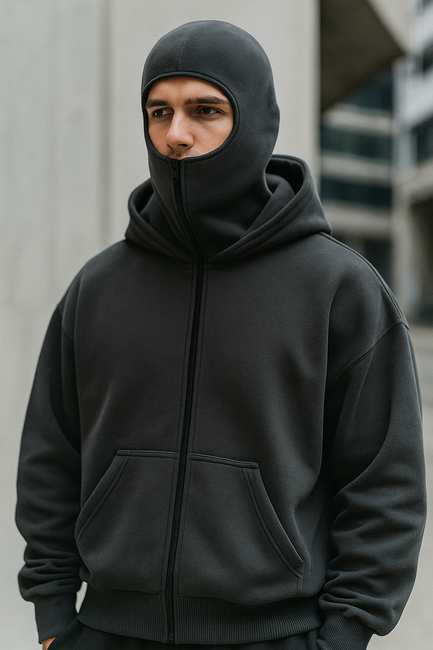 Der ZYPRA Balaclava Hoodie vereint Komfort, Schutz und minimalistisches Design in einem Stück.